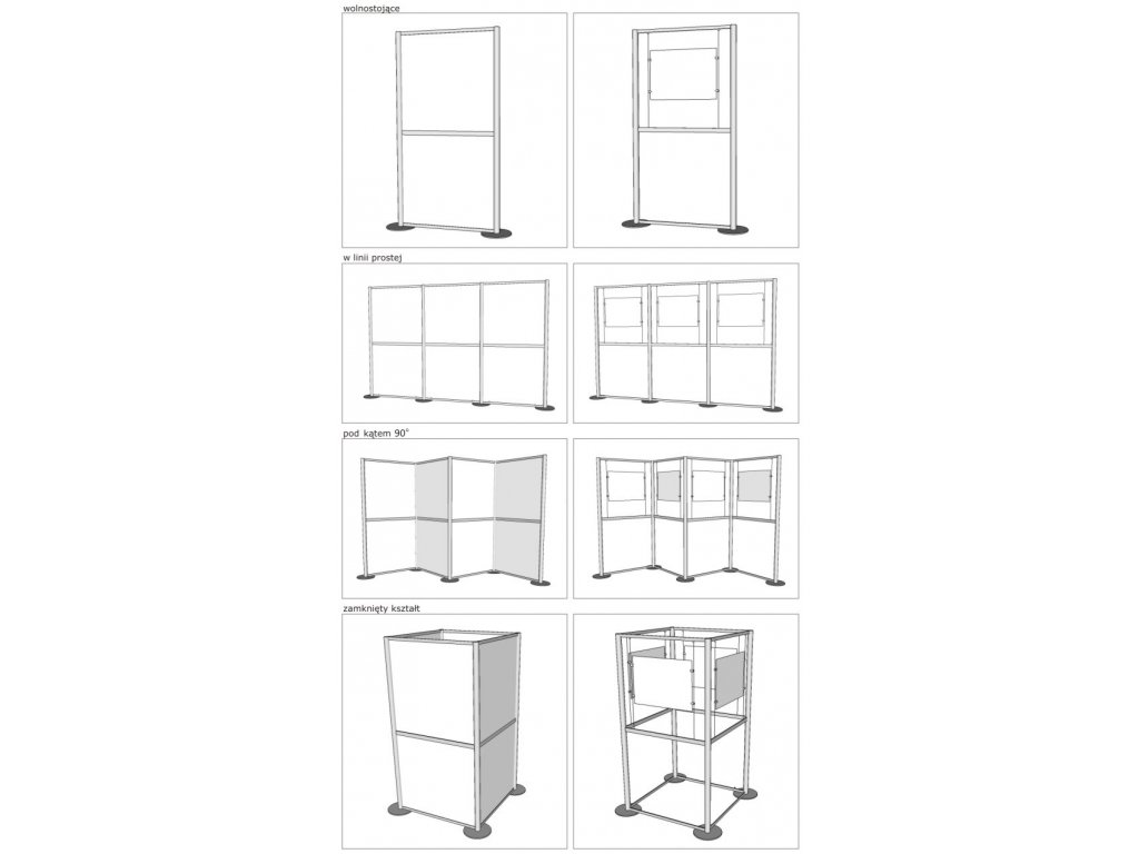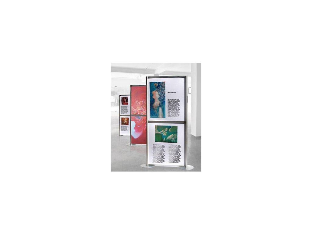 - Na výstavné steny môžu byť upevnené tiež štandardné rámčeky alebo klip-rámy, pripevnené na výstavnú stenu, v ktorých sa dá obmeňovať reklamné oznámenie podľa potreby