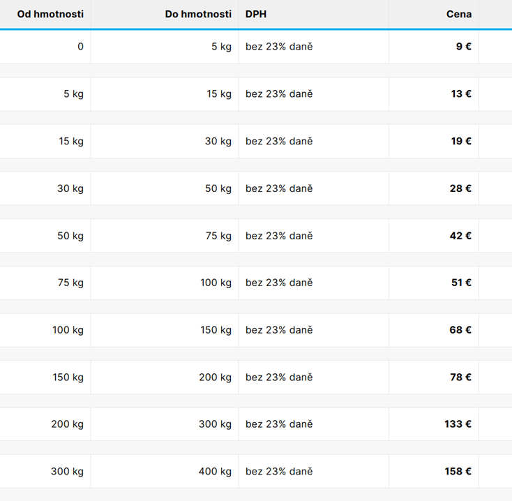Ceny dopravného sa odvíjajú od druhu zboží: